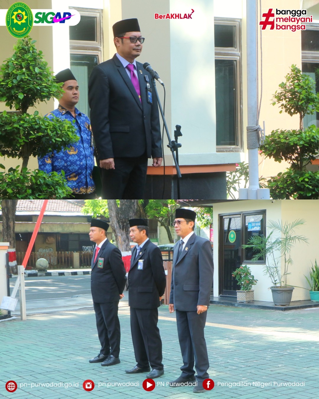 Upacara berlangsung dengan khidmat dan tertib, dipimpin langsung oleh Wakil Ketua Pengadilan Negeri Purwodadi sebagai pembina upacara. Dengan tema "Pancasila Jiwa Pemersatu Bangsa Menuju Indonesia Maju", marilah kita senantiasa mengamalkan nilai-nilai luhur Pancasila dalam memperkuat komitmen seluruh insan peradilan dalam menjaga persatuan dan kesatuan bangsa. Berikut dokumentasi dari acara tersebut.