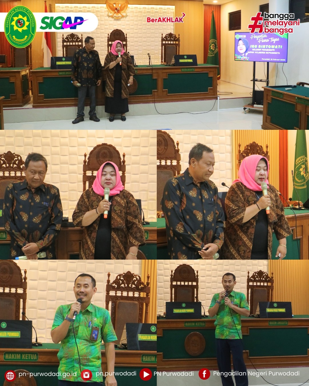 Purwodadi – Jumat, 13 Februari 2026. Pengadilan Negeri Purwodadi menyelenggarakan acara Pelepasan Purnabakti Ibu Rintowati sebagai Jurusita Pengganti Pengadilan Negeri Purwodadi.