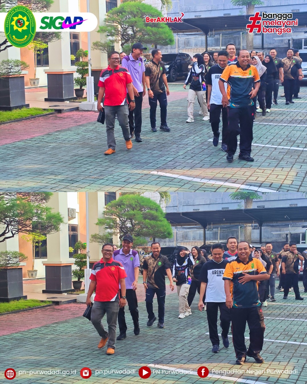 Purwodadi – Jum'at, 17 April 2026. Pengadilan Negeri Purwodadi telah melaksanakan kegiatan jalan sehat bersama pada Jumat, 17 April 2026, yang diikuti oleh seluruh aparatur di lingkungan kantor.