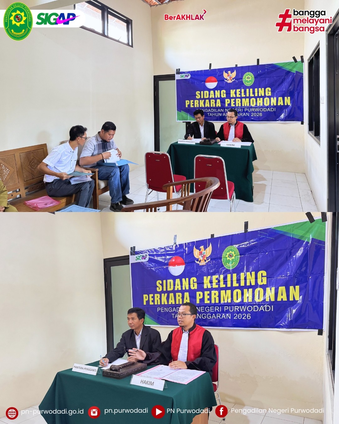 Purwodadi – Senin, 20 April 2026. Pengadilan Negeri Purwodadi hari ini melaksanakan Sidang Keliling untuk  1 (satu) perkara permohonan Tahun Anggaran 2026 yakni nomor perkara 66/Pdt.P/2026/PN Pwd, sesuai dengan DIPA Badan Peradilan Umum Mahkamah Agung RI Nomor: SP. DIPA-005.03.2.099101/2026 tanggal 24 Desember 2025.